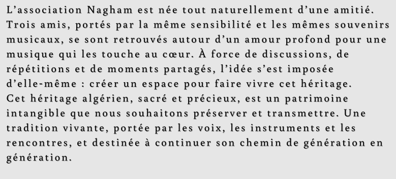 Amine Benabid, joueur de qanoun formé au sein de l’association de musique andalouse « Les Rossignols d’Alger ». Il a participé à plusieurs ensembles, interprétant différents répertoires, notamment les musiques gnawi, raï et chaâbi algérien. Installé à Marseille, il est le fondateur du groupe Chaabawi Groove et le président de l’association Nagham Andalousie.